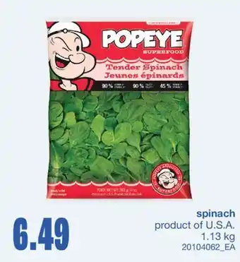 Wholesale Club offers a wide collection of products, besides the SPINACH, 1.13 kg. Keep an eye on the weekly Wholesale Club flyer to find the best offers and promotions. Besides SPINACH, 1.13 kg, you can also find the following offers: SPINACH, Spinach & Cooking Spinach.