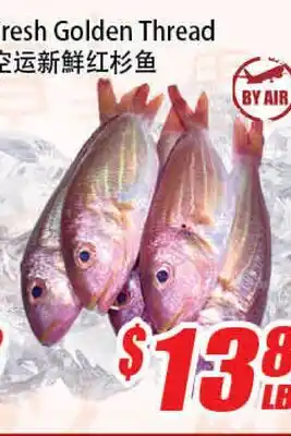 This promotion is available in various stores, view all products to get the cheapest Fresh Golden Thread. If you'd like to find out whether this product has a bigger discount in another store, check the category 'Grocery'. You may also find these offers interesting: Fresh Golden Pineapple, Fresh Golden Groupers & Fresh Cored Golden Pineapple.