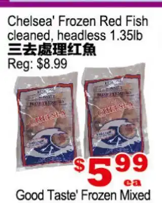 Chelsea' Frozen Red Fish cleaned, headless 1.35lb offer at Yuan Ming Supermarket